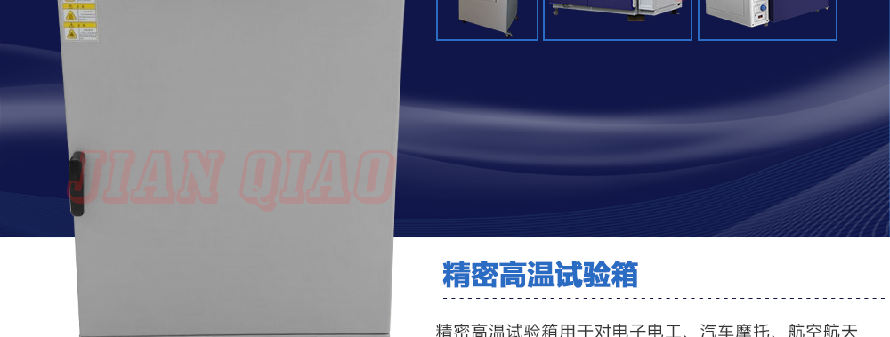 用途:精密高溫試驗箱用于對電子電工、汽車摩托、航空航天、橡膠、塑膠、金屬、船舶兵器、高等院校、科研單位等相關(guān)產(chǎn)品的零部件及材料在高溫恒溫變化的情況下,檢驗其各項性能指標