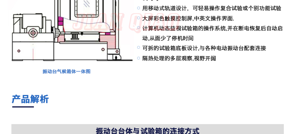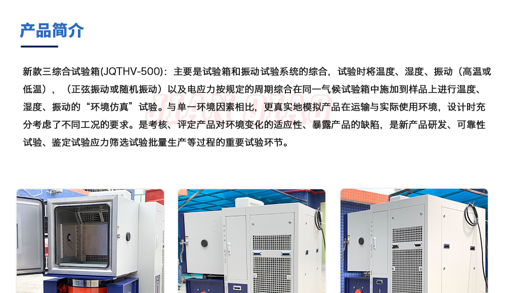 用途:新款三綜合試驗箱(JQTHV-500):主要是試驗箱和振動試驗系統(tǒng)的綜合,試驗時將溫度、濕度、振動(高溫或低溫),(正弦振動或隨機(jī)振動)以及電應(yīng)力按規(guī)定的周期綜合在同一氣候試驗箱中。